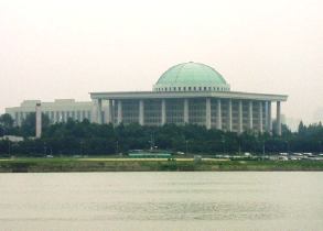 漢江(ハンガン=ソウルを流れる川)沿いに、赤く見える干潟や、韓国の国会議事堂が見えた。