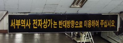 「西部歴史(それとも西部駅舎と読むのだろうか?)電子商店街電は反対方向をご利用下さい」と書いてるのだろう。
