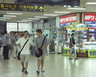 改札の横に携帯音楽機器やパソコンソフトを売っている店が有る。