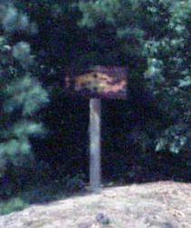 もう少し右に視線を向けると、木々の中に寂れた黄色い看板が見える。