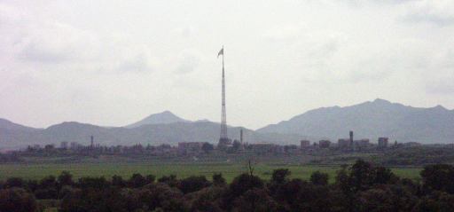 上の写真の中央に見えるのは、てっぺんに北朝鮮の国旗が掲げられていて「ここは朝鮮民主主義人民共和国」であると主張しているようだ。