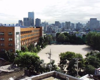 隣には学校があるのだが、校庭が雨に濡れていることもなく、町並みもとてもくっきり見えた。