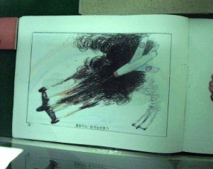(北朝鮮戦闘機に撃墜され)墜落する米国鬼畜の飛行機