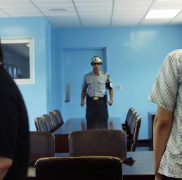 話しによると、会議棟の中を見学している時、北朝鮮の憲兵が棟の中を覗くこともあるらしいが、そういう特殊な場面であっても手を振ったりしてはいけない。