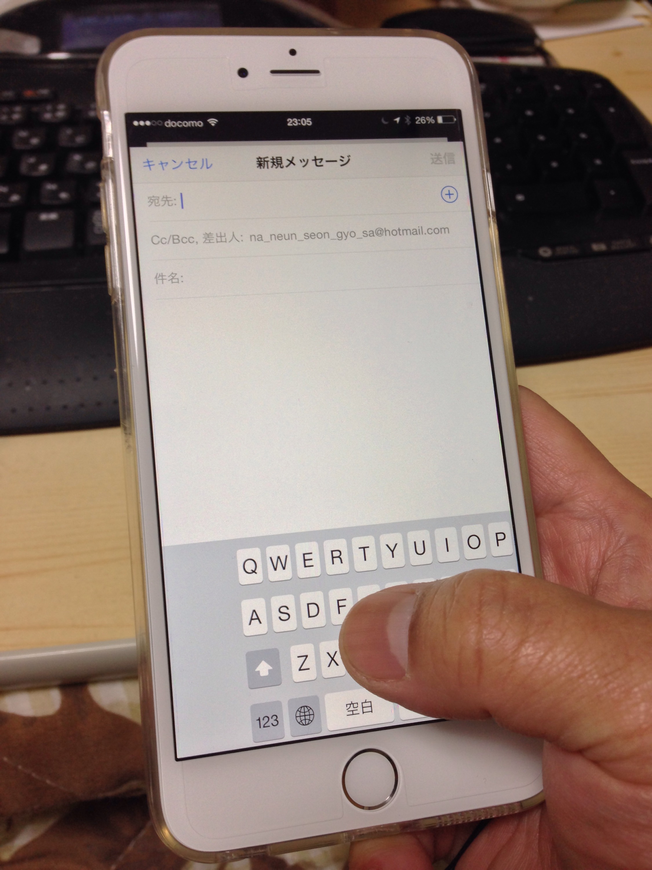 今までのiPhoneだと片手でピコピコ文字入力できていたんですけど、画面がこれだけ大きいと左端のキーに指が届きません。
