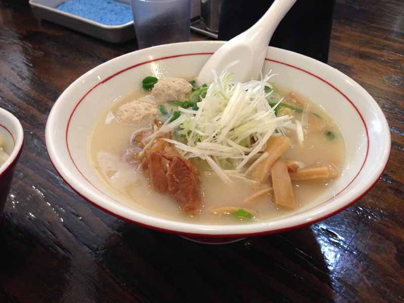 トッピングは青ネギとネギの白い部分を細長く切ったものと支那竹。
