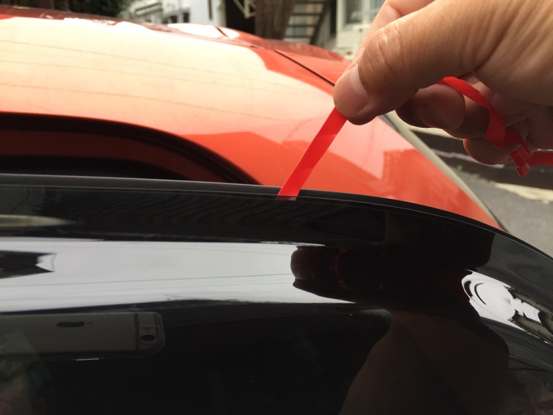 パーツの両端にある両面テープを数センチ分剥がしておきます。